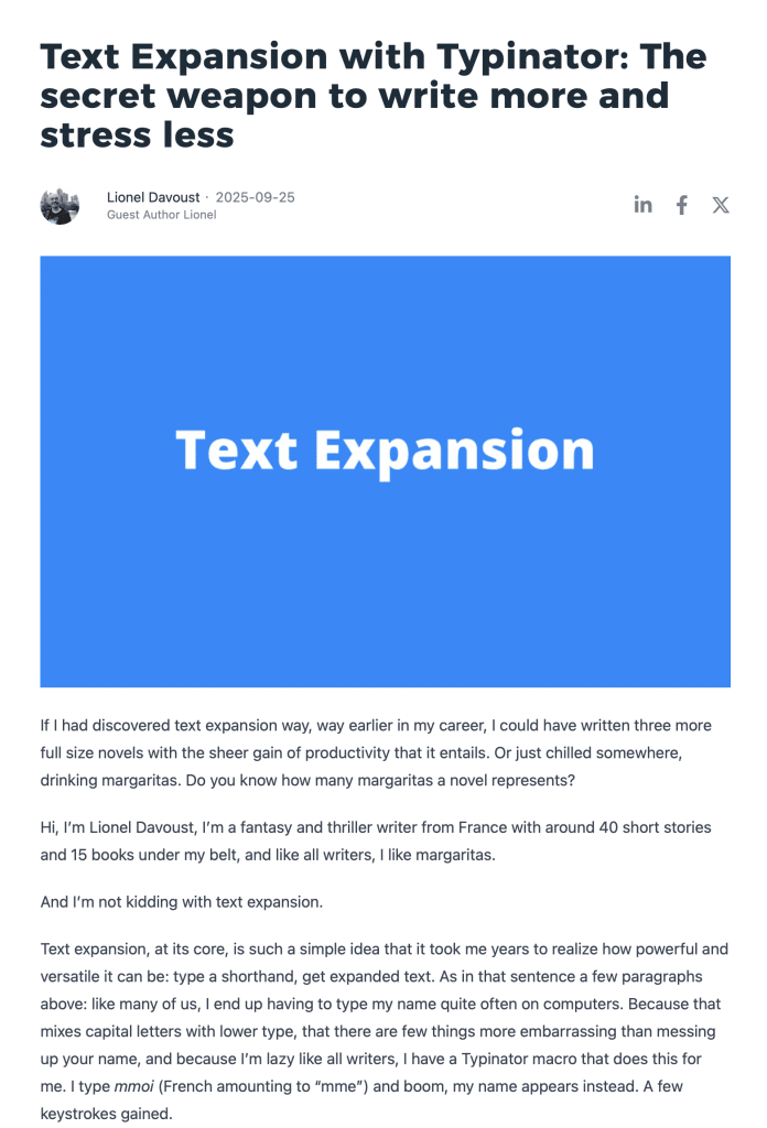Expansion de texte : article invité sur le blog de Typinator, app sans abonnement